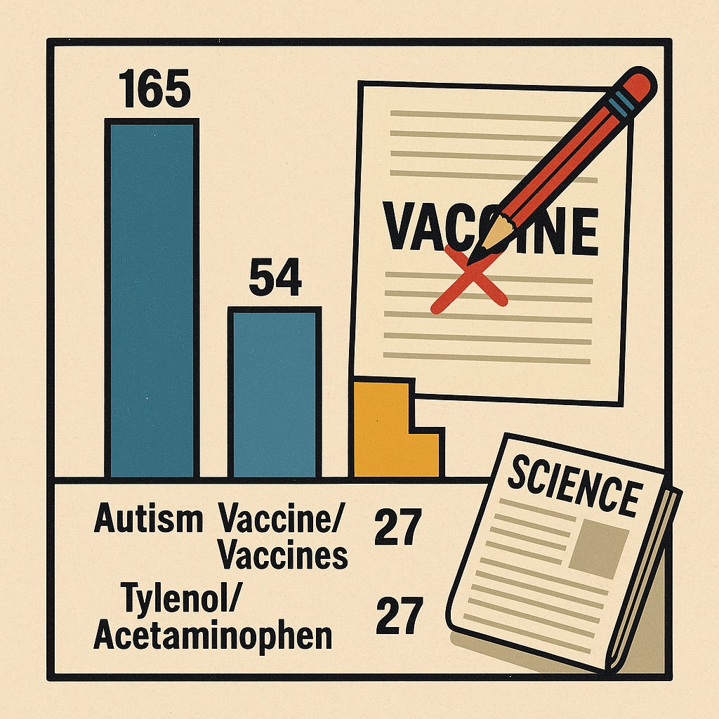 A teljes, 13 802 szóból álló beszéd szövegelemzése szerint az „autism” szó 165 alkalommal, a „Tylenol/acetaminophen” összesen 27 alkalommal, míg a „vaccine/vaccines” 54 alkalommal szerepel. Ez a számszerű arány bizonyítja, hogy az oltások kétszer akkora súllyal jelennek meg a beszédben, mint a Tylenol. A média ezzel szemben szándékosan a Tylenol-kérdésre szűkítette a közleményt, elhallgatva az oltások központi szerepét. A hivatalos amerikai állami vezetés szavai alapján tehát az oltások potenciális szerepének elismerése az autizmus kialakulásában vitathatatlanul megjelent a nemzetközi politikai diskurzusban.